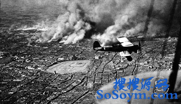 • 1937年10月,日本军机飞越上海浦东上空,下方冒烟处为战火遍地的闸北地区。