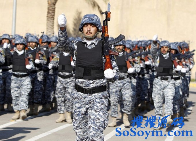 主要用于运输的米-17表演了编队飞行。这种20世纪70年代问世的直升机型目前仍是伊拉克陆航队主力机型,占总数的大约40%。一架空载重量达7吨多的米-17低空掠过演习观礼台,似乎擦着台角高高飘扬的红黑白三色伊拉克国旗。